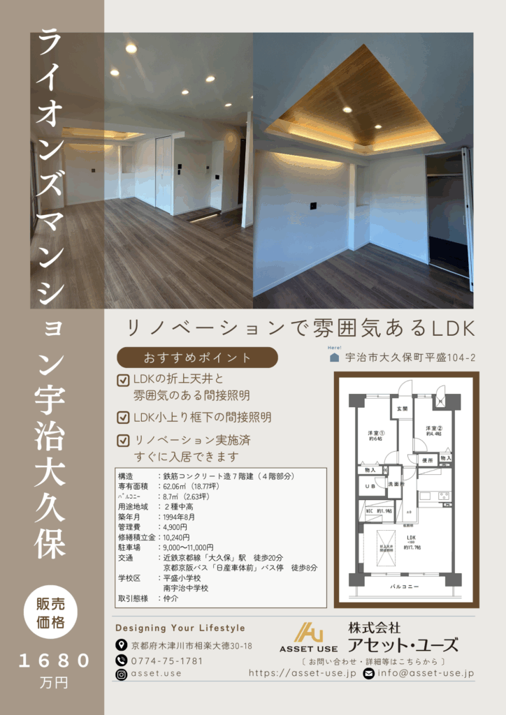 ◆価格変更◆ ライオンズマンション宇治大久保 1980万円 → 1680万円