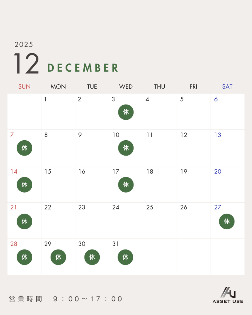 12/27(土)~1/6(火)は年末年始のお休みをいただきます。